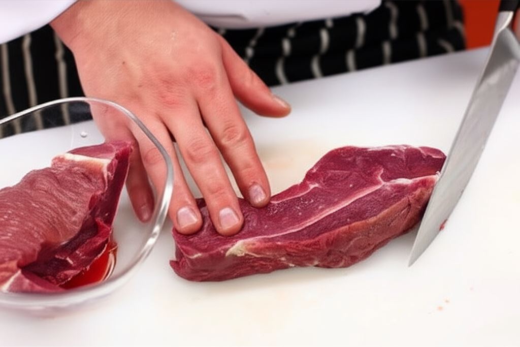 Rostbef podziel na steki (każdy o wadze około 220 gramów). Szalotki posiekaj w małą kostkę.
