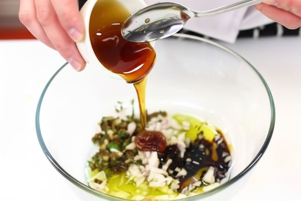 Mieszaninę przypraw wsyp do miseczki, wlej oliwę, dodaj sos sojowy, miód i szalotki.