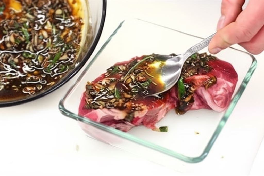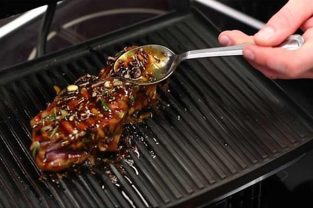 Przy użyciu pędzla lub łyżki posmaruj przygotowaną mieszanką mięso.
