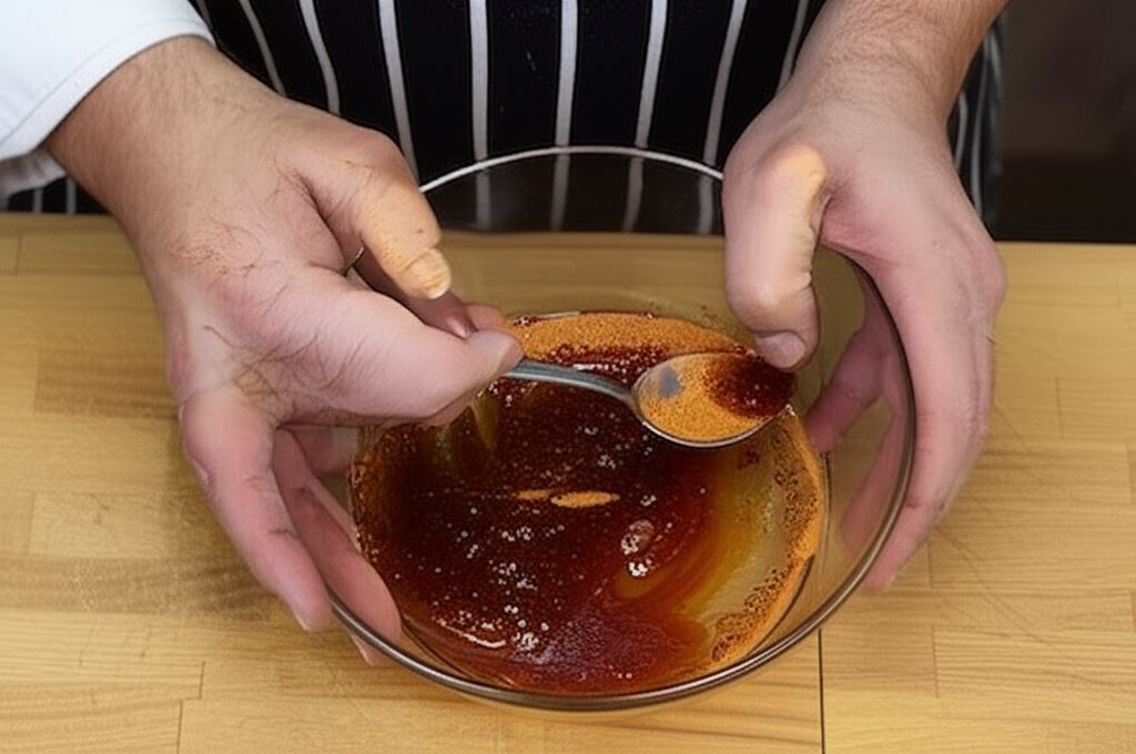 W misce połącz dwie łyżki oliwy z dwoma łyżkami przyprawy do mięs. W uzyskanej marynacie zanurz mięso. Steki przyrumień po minucie z każdej strony na patelni grillowej.