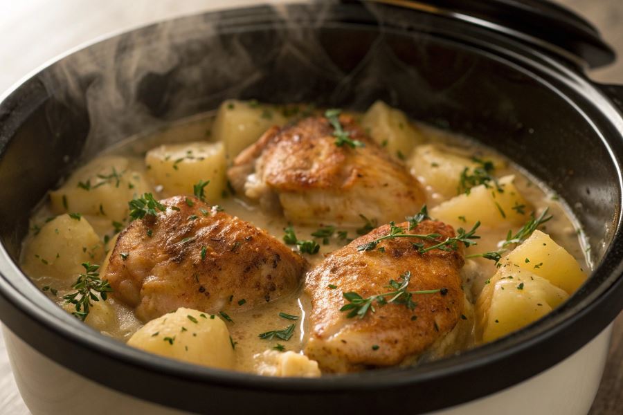 Szczelne zamknięcie urządzenia sprawia, że aromaty i soki pozostają w potrawie, intensyfikując jej smak. Ziemniaki chłoną aromat przypraw i kurczaka, stając się niezwykle smakowite, podczas gdy mięso pozostaje soczyste i delikatne.
