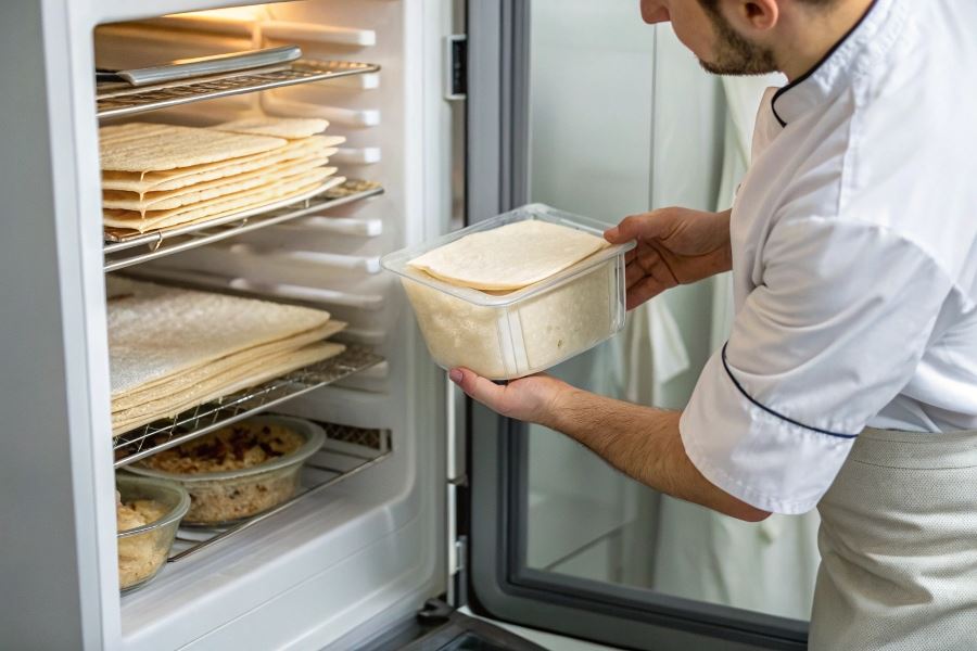 Dla optymalnych rezultatów warto stosować woreczki próżniowe, które eliminują powietrze i zapobiegają powstawaniu kryształków lodu. Rozmrażanie powinno odbywać się powoli, najlepiej przez noc w lodówce, co pozwala zachować elastyczność ciasta.