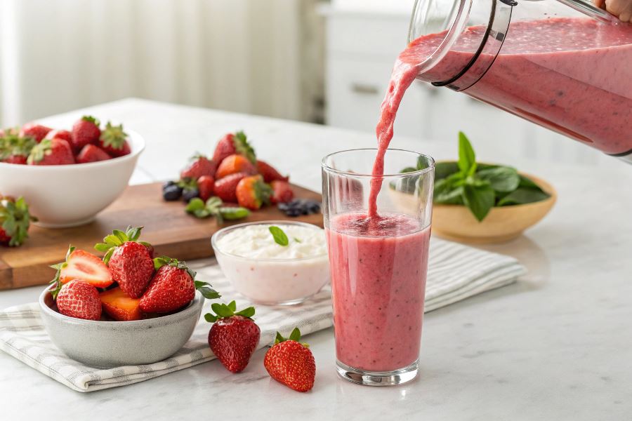 Proporcje składników dla idealnego smoothie truskawkowego to: