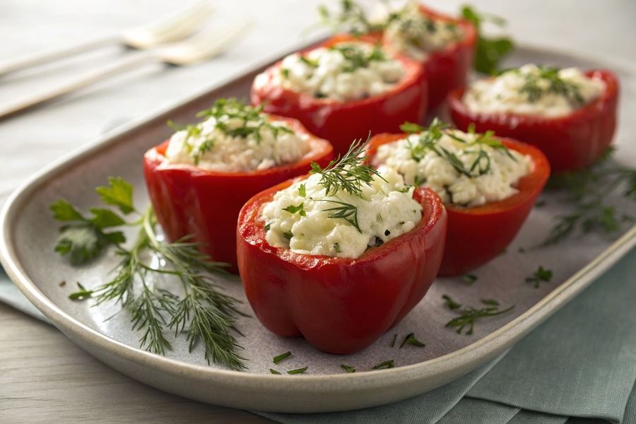 Papryka faszerowana serkiem śmietankowym to elegancka przekąska, która łączy w sobie lekkość, wyrazisty smak i efektowną prezentację. Jej głównym atutem jest kontrast między chrupiącą, soczystą papryką a kremowym, delikatnym nadzieniem. Ta kompozycja stanowi nie tylko ucztę dla podniebienia, ale również dla oczu – intensywne kolory papryki tworzą apetyczny kontrast z białym serkiem.