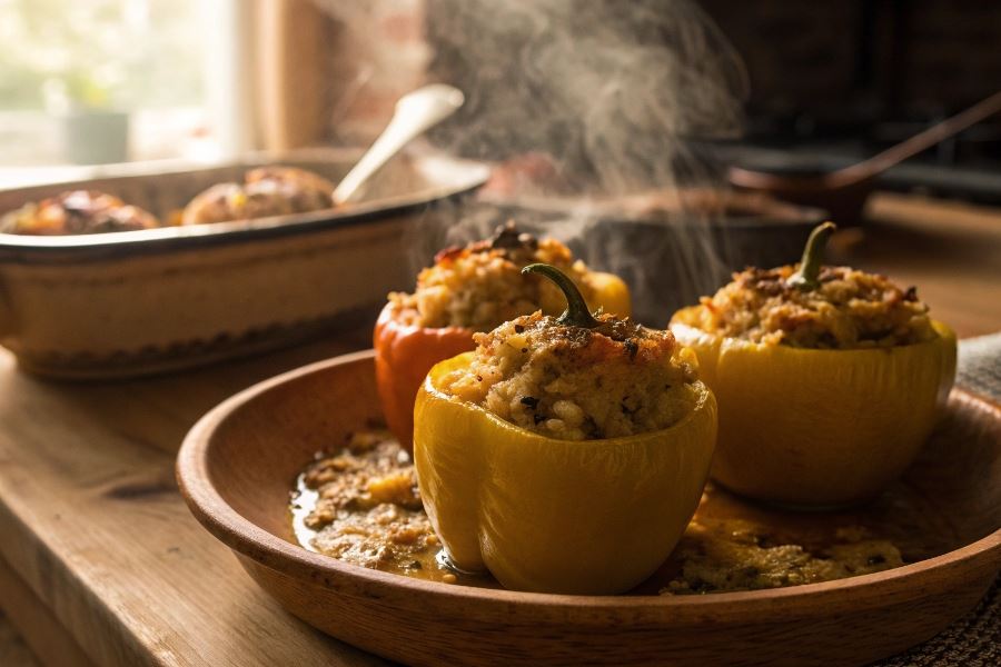 Papryka faszerowana z ziemniakami to danie, które na stałe zagościło w polskiej kuchni w latach 70. XX wieku, gdy warzywa paprykowe stały się bardziej dostępne na krajowym rynku. Początkowo traktowana jako kulinarna nowość, szybko zyskała status potrawy rodzinnej, przekazywanej z pokolenia na pokolenie. W przeciwieństwie do innych dań z nadzieniem, papryka faszerowana z ziemniakami wyróżnia się charakterystycznym połączeniem słodkawego smaku papryki z kremową konsystencją ziemniaków.