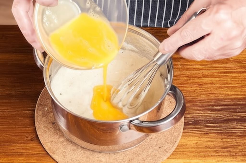 Przygotowany sos odłóż na bok aby nieco przestygł. Potem wprowadź do niego żółtka.