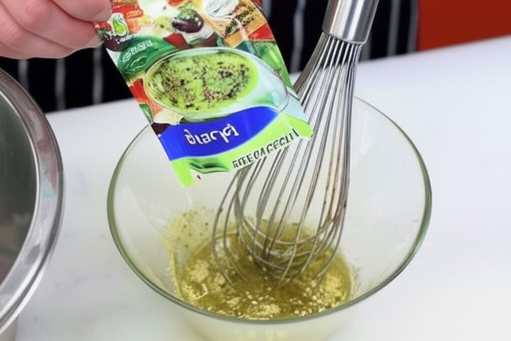 Sos sałatkowy grecki Knorr połącz z 2 łyżkami wody i 3 oliwy.