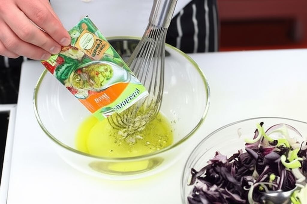 Sos sałatkowy Knorr zmieszaj z 3 łyżkami wody i 3 oliwy. Wymieszaj razem wszystkie składniki. Serwuj z pieczonym drobiem.