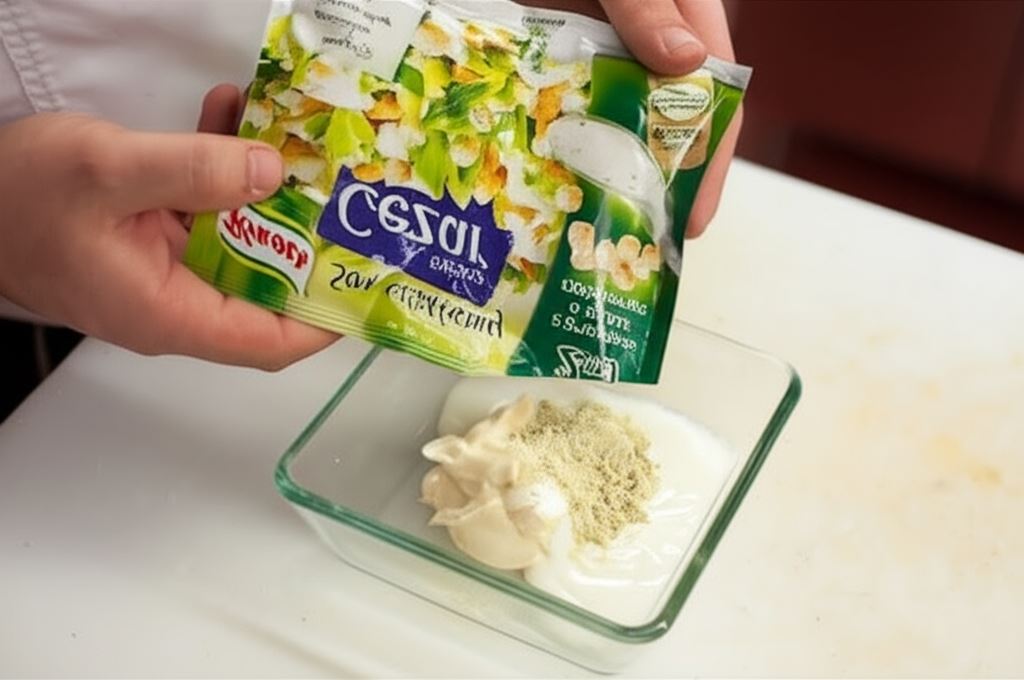 Sporządź sos sałatkowy Knorr. Połącz zawartość opakowania Knorr z majonezem i utartym serem.