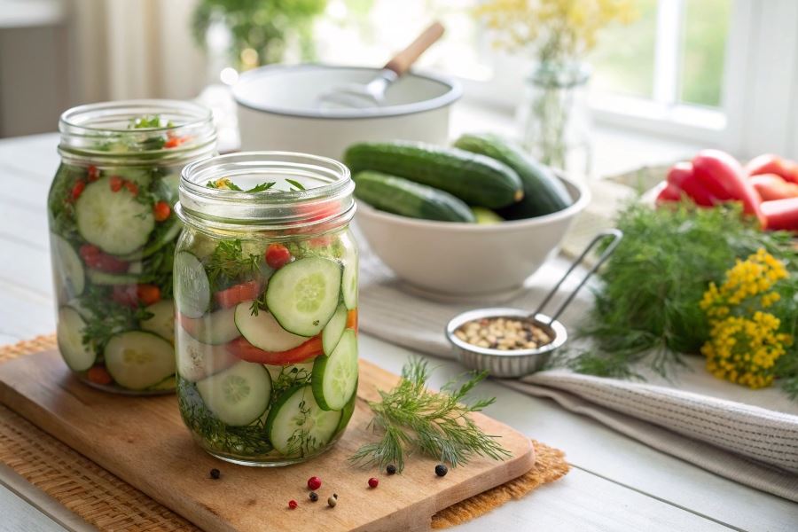 Wskazówka eksperta: Aby uzyskać bardziej wyrazisty smak, dodaj 1 łyżeczkę kurkumy lub 3-4 goździki. Pamiętaj, że zalewa powinna być ciepła, ale nie wrząca podczas zalewania warzyw – zbyt gorąca może sprawić, że warzywa stracą chrupkość.
