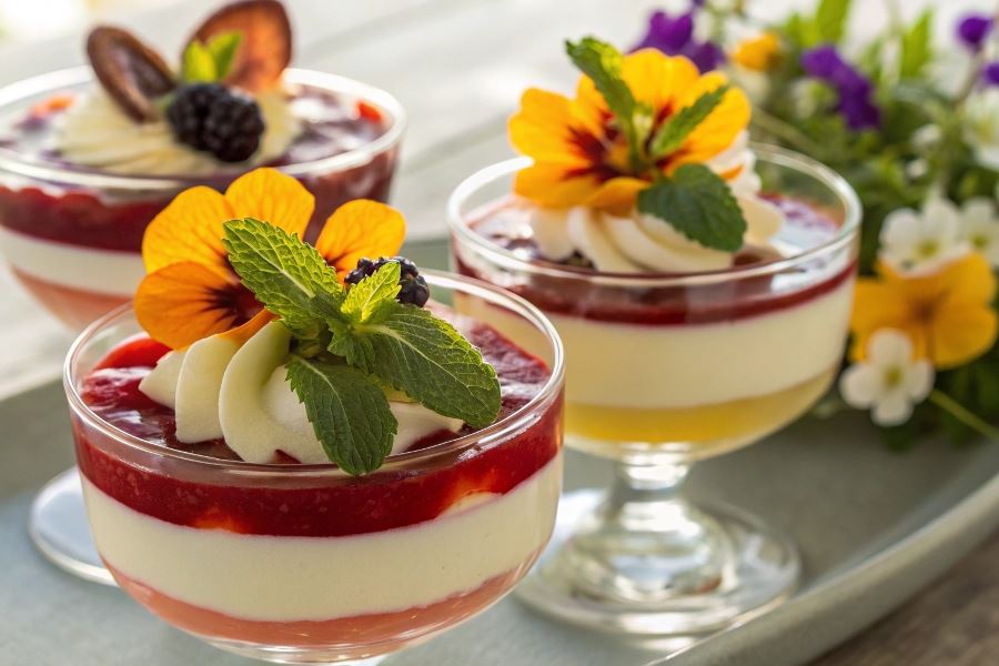 Dla bardziej wyrafinowanych podniebień sprawdzą się pucharki z galaretką szampańską lub prosecco, ozdobione jadalnymi kwiatami czy złotymi płatkami. Takie desery robią wrażenie na gościach podczas eleganckich przyjęć.