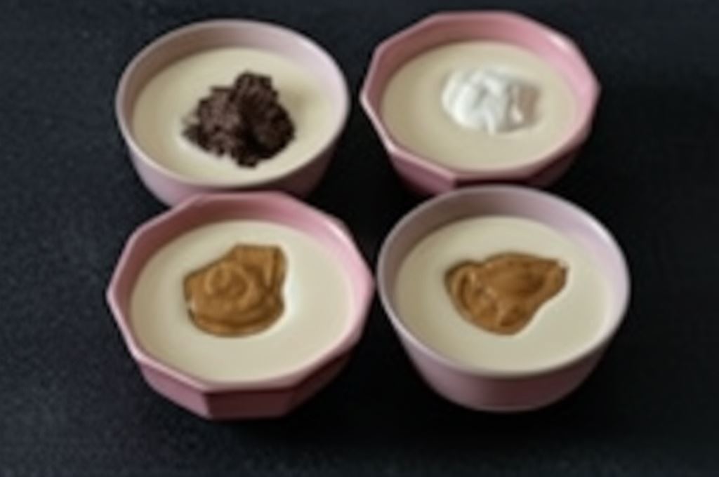 Do pierwszego naczynia wsyp masę makową i mąkę ziemniaczaną, do drugiego czekoladę deserową rozpuszczoną w śmietance 30%, do trzeciego masę kajmakową, a do czwartego ser twarogowy (100 gramów) – wymieszaj zawartość każdego naczynia.