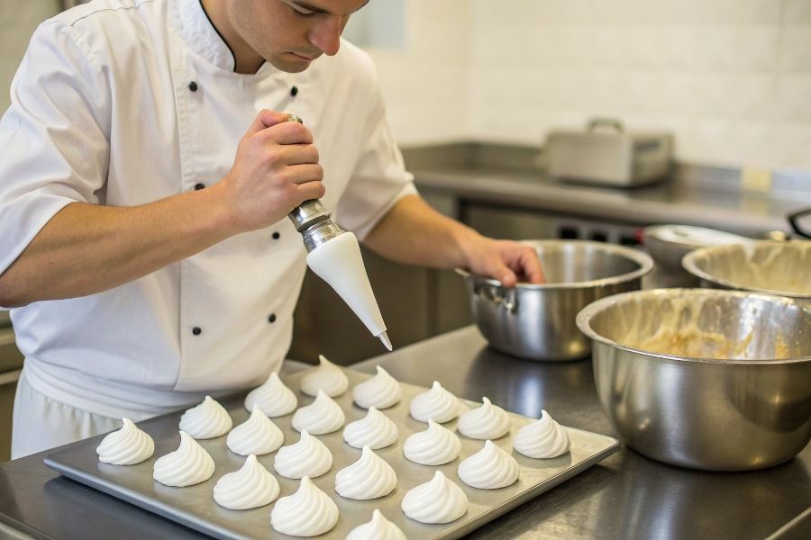 Przygotowanie bezy szwajcarskiej wymaga specjalistycznych narzędzi oraz odpowiednich warunków kuchennych: