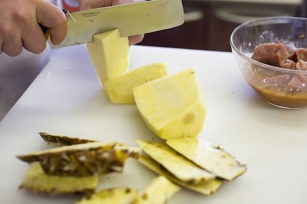 Ananas zawiera bromelainę – enzym, który pomaga w trawieniu białek i nadaje mięsu wyjątkową kruchość. Dlatego marynowanie wieprzowiny w soku ananasowym nie tylko wzbogaca smak, ale również sprawia, że mięso staje się bardziej soczyste i delikatne.