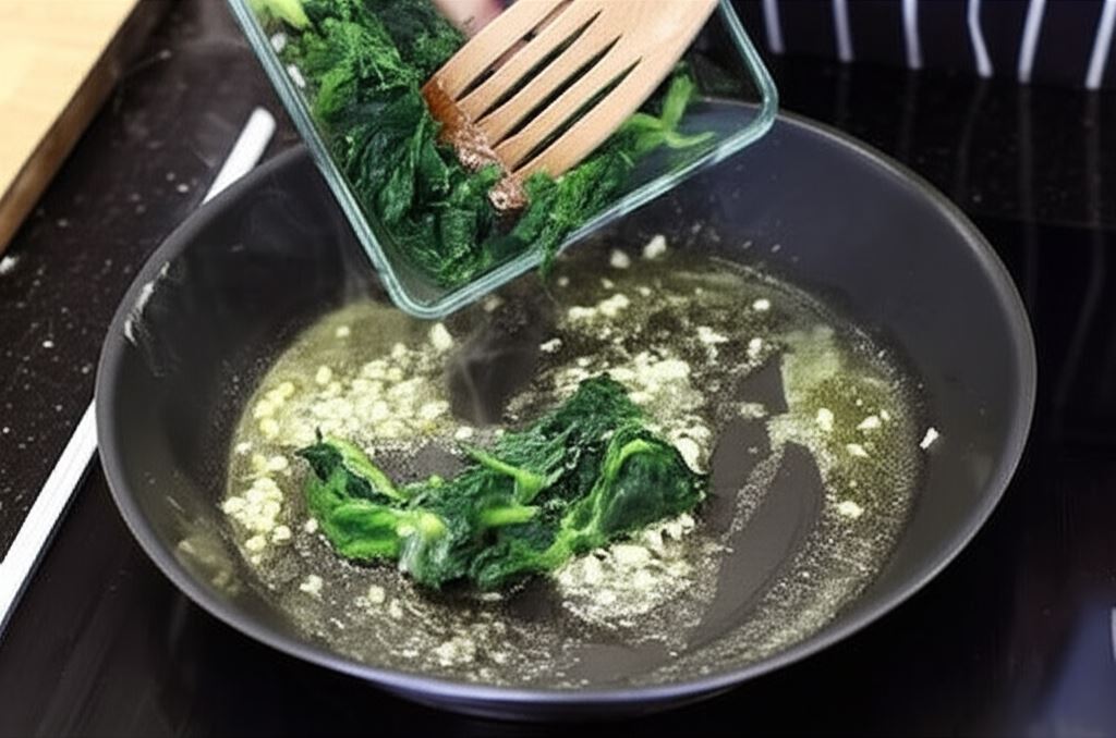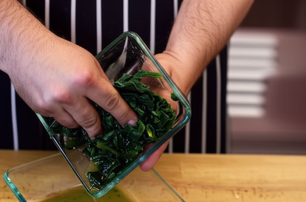Szpinak dokładnie opłucz. W przypadku mrożonego, odtaj go i wyciśnij wodę.