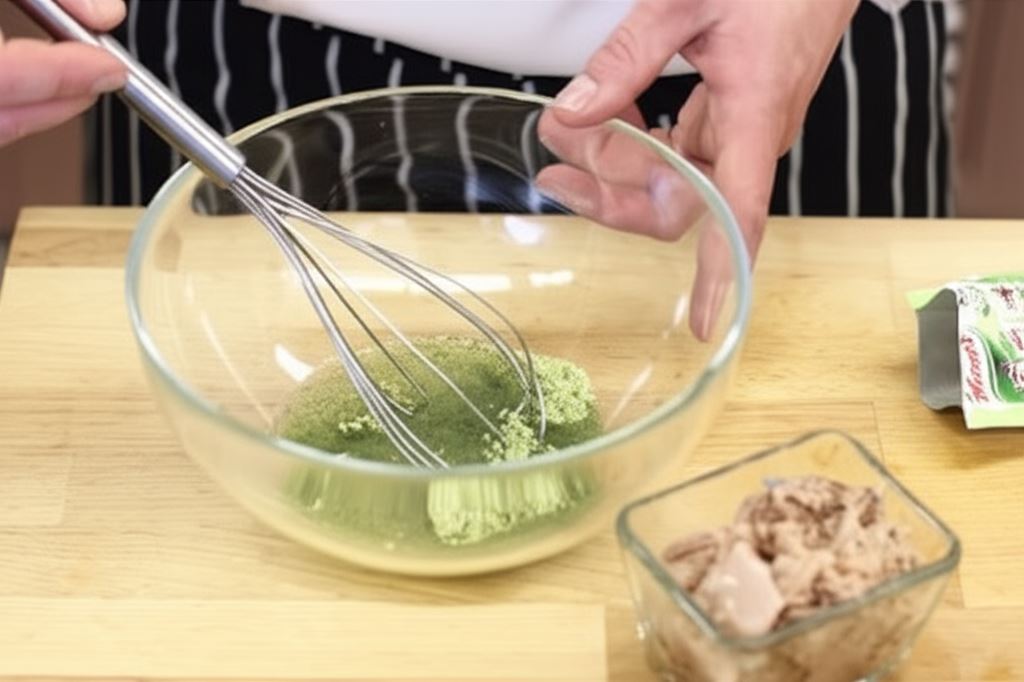 Dressing do sałatki wymieszaj z 3 łyżkami wody i 3 łyżkami oleju z konserwy tuńczyka.