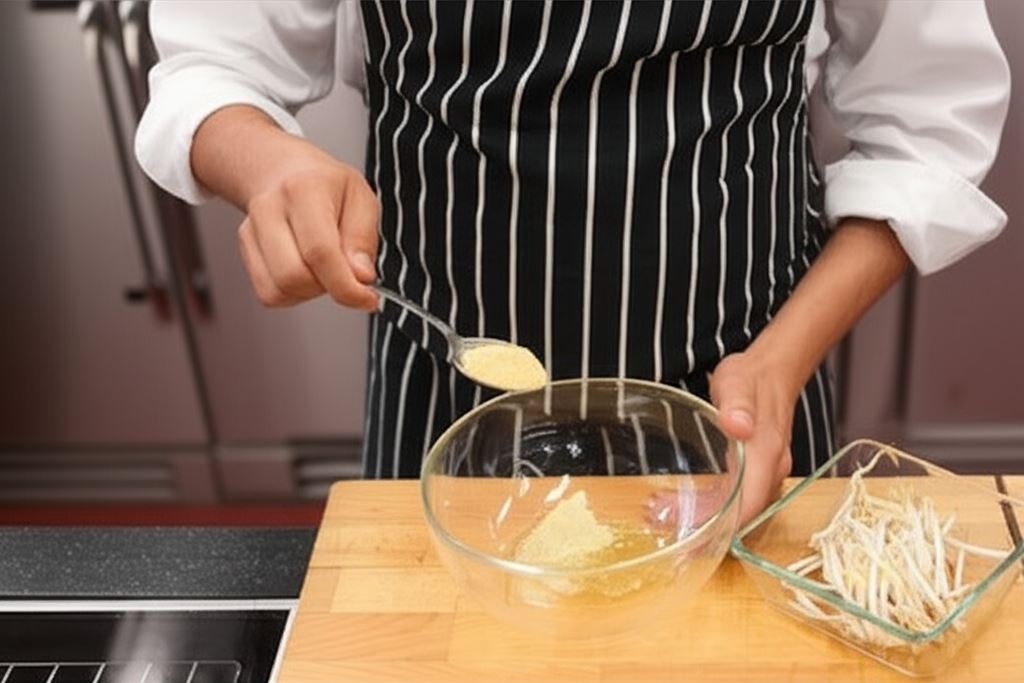 Kiełki przepłucz w zimnej wodzie i odcedź. Przygotuj aromatyczny, ziołowy sos łącząc zawartość opakowania Knorr z 3 łyżkami wody oraz oliwą.