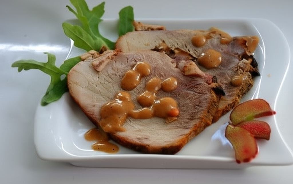 Szynka pieczona z sosem rabarbarowym