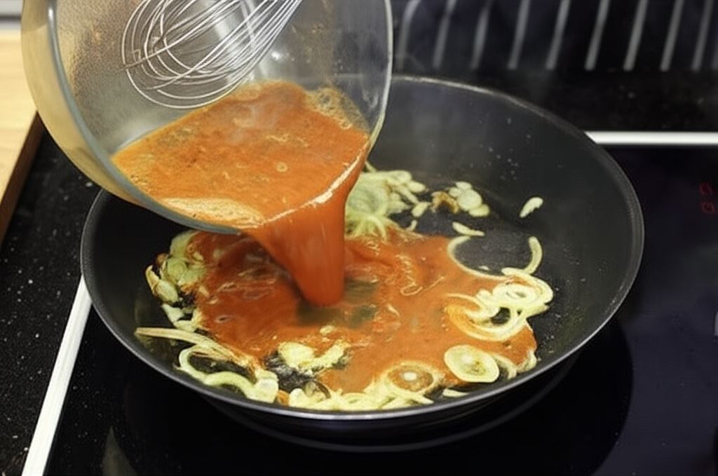 Wymieszaj Fix Knorr z 250 ml zimnej wody i wlej go na składniki znajdujące się na patelni.