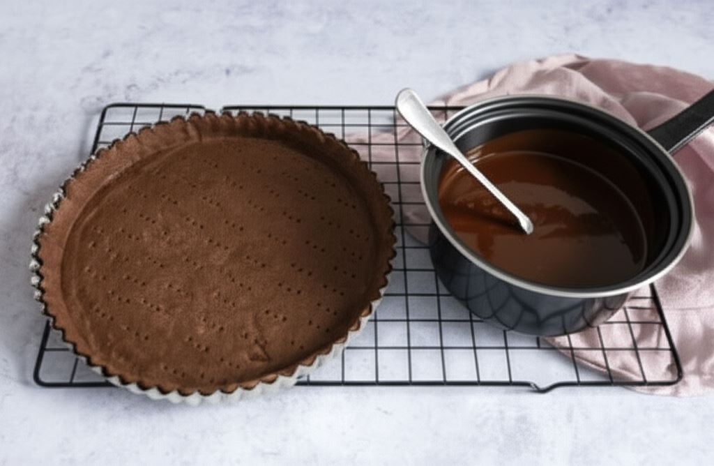 Sekret tej wyjątkowej tarty tkwi w podwójnej dawce czekolady – kakao dodane do kruchego spodu oraz wysokiej jakości czekolada w kremie tworzą głęboki, intensywny smak, któremu trudno się oprzeć. Po kilku godzinach chłodzenia masa czekoladowa zyskuje idealną konsystencję – wystarczająco zwartą, by utrzymać kształt, a jednocześnie rozpływającą się pod naciskiem łyżeczki.