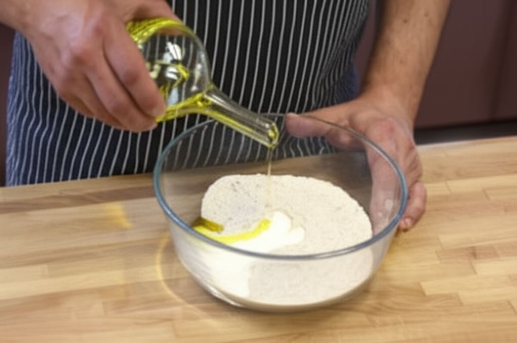 Mąkę połącz z wodą, oliwą i jogurtem naturalnym. Ciasto wyrabiaj aż utworzy jednolitą kulkę. Rozwałkuj ją i wyłóż nią formę do tarty o średnicy 32 cm, a na końcu nakłuj widelcem.