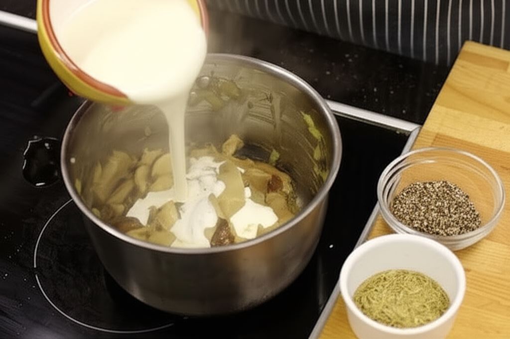 Grzyby pokrój na cienkie plastry, cebulę i czosnek drobno posiekaj. W małym garnku zesmaż cebulę i czosnek, wsyp grzyby i smaż krótko. Potem dodaj śmietanę, wsyp przyprawy Knorr – rozmaryn i pieprz. Sos gotuj przez 8-10 minut na małym ogniu, dopraw według smaku i odstaw z ognia.