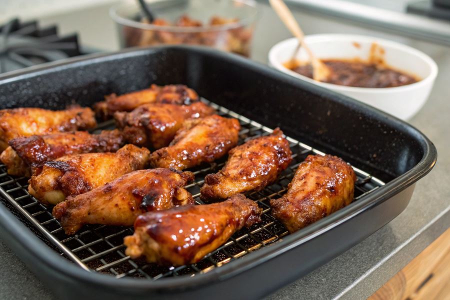 Do uzyskania idealnych skrzydełek teriyaki w airfryer przyda się kilka akcesoriów: