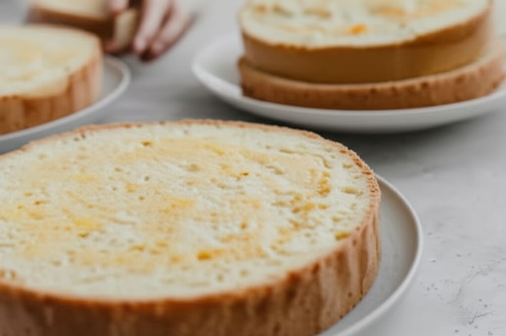 Biszkopty po ostygnięciu przekrój na połowę. Powinieneś uzyskać 4 płaty ciasta. Każdy z nich nasącz sokiem wyciśniętym z pomarańczy.