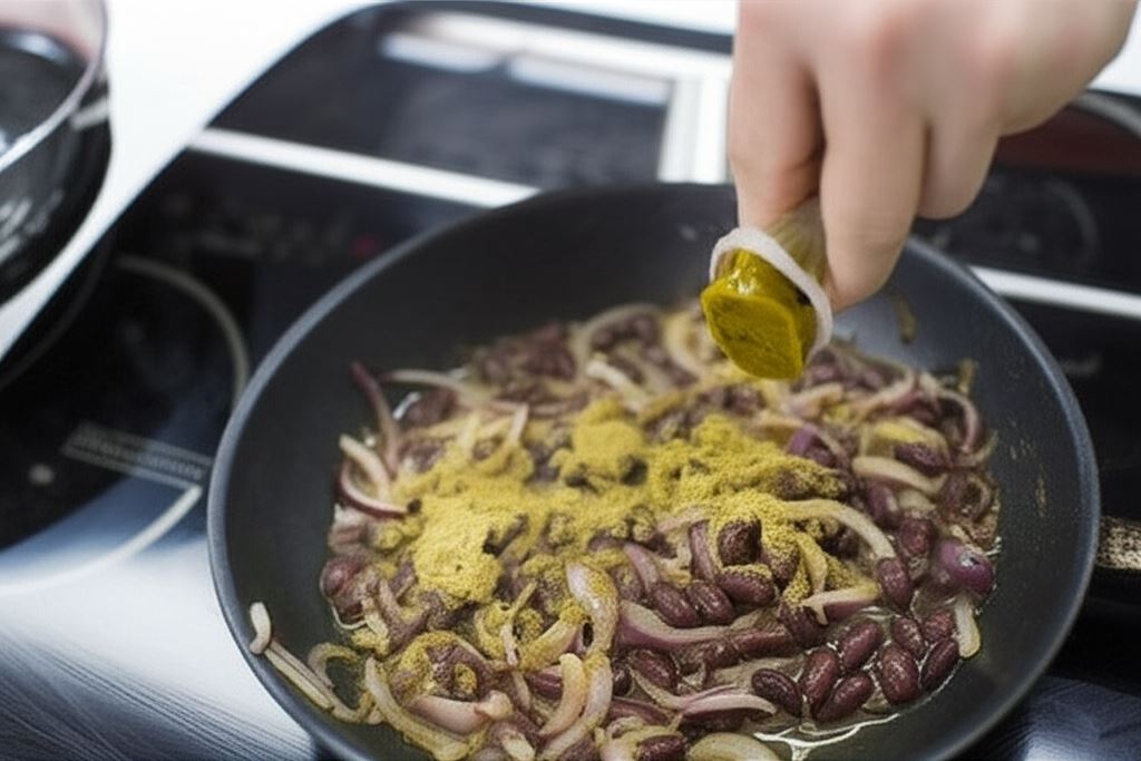 Wsyp kumin i Bulionetkę wołową Knorr, po czym duś wszystko przez około 5 minut.