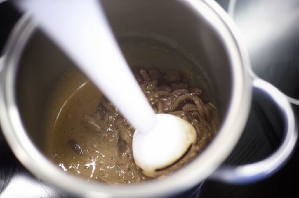 Po upływie tego czasu zblenduj fasolę na gęsty krem. Po zblendowaniu wsyp rodzynki i ostrożnie zamieszaj.
