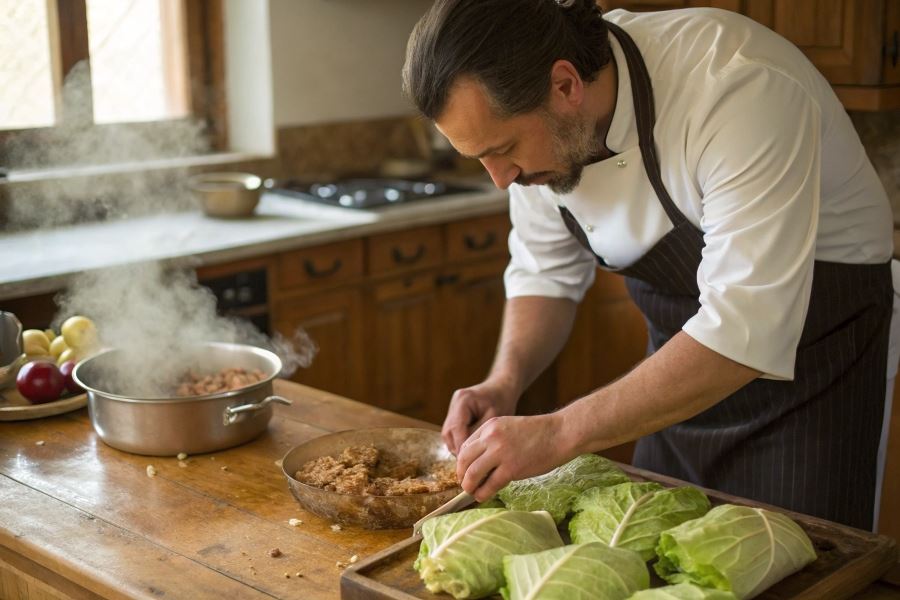 Sekret doskonałego farszu tkwi w odpowiednim przygotowaniu ryżu – powinien być ugotowany al dente, aby podczas duszenia gołąbków wchłonął aromaty i soki. Cebulę należy zeszklić na maśle, co nadaje farszowi charakterystyczny, głęboki smak.