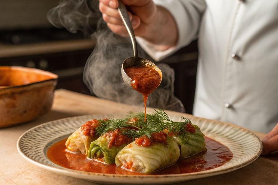 Fermentowane warzywa to nie tylko dodatek do gołąbków, ale również doskonała baza do innowacyjnych polew. Kimchi zmiksowane z bulionem warzywnym i odrobiną masła tworzy kompleksową w smaku polewę, która dodaje gołąbkom umami i delikatnej pikanterii. Podobnie działa kiszona kapusta – zblendowana z dodatkiem śmietany i kminku tworzy kremową polewę o wyrazistym, kwaśnym charakterze.