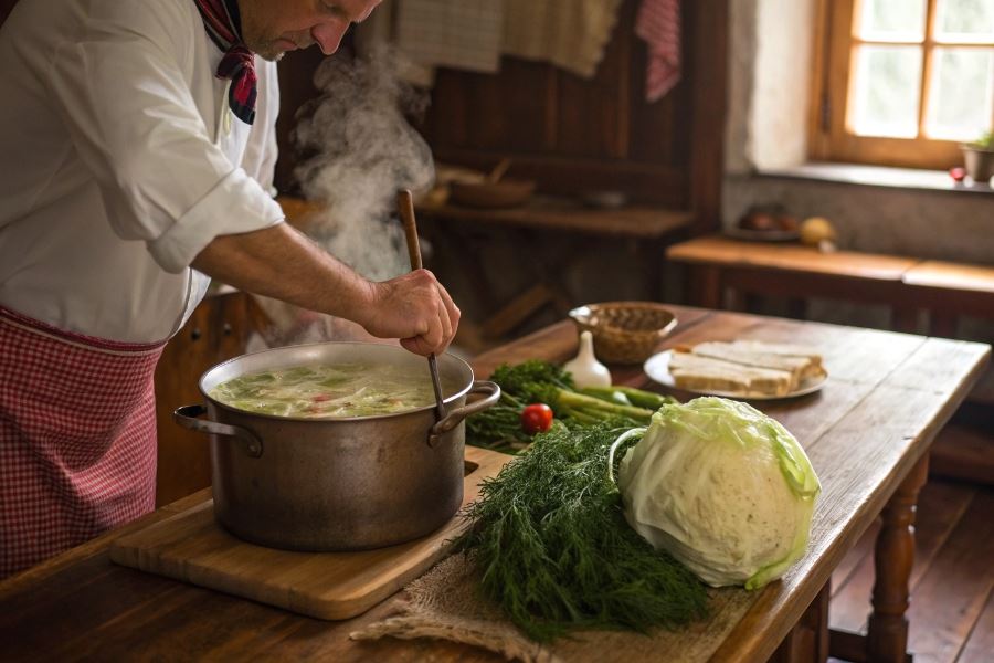 Sekret udanej zupy kapuścianej tkwi w odpowiednim pokrojeniu kapusty – cienkie paski uwalniają więcej smaku i lepiej absorbują aromaty pozostałych składników.
