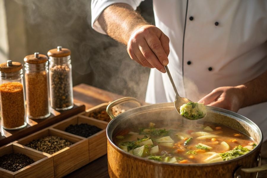 Sekret doskonałego kapuśniaku tkwi w umiejętnym balansie przypraw korzennych. Zbyt duża ilość ziela angielskiego może zdominować delikatny smak kapusty, podczas gdy odpowiednia ilość kminku sprawi, że zupa będzie lekkostrawna.
