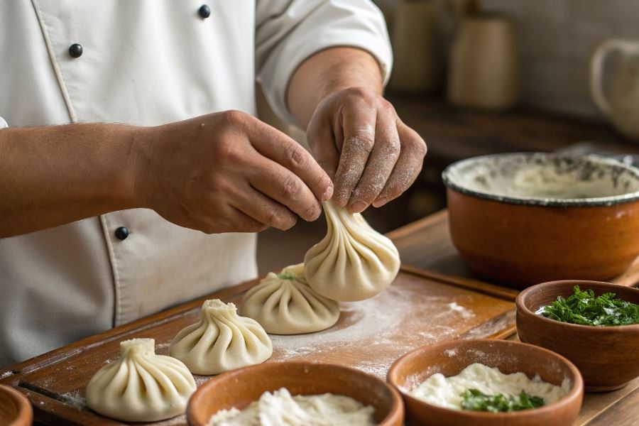- Dodatki: Tradycyjne chinkali serwuje się z czarnym pieprzem, awar chinkal wymaga sosu na bazie kefiru