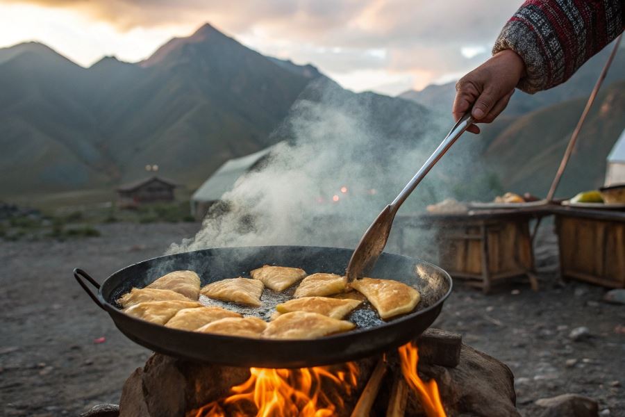 Tradycja smażenia czebureka w kotle na otwartym ogniu sięga wielu stuleci i wywodzi się z kuchni koczowniczych ludów Krymu i Azji Centralnej. Ta metoda przygotowania była nieodłącznym elementem życia pasterzy, którzy podczas wędrówek ze stadami potrzebowali prostego, ale sycącego posiłku. Kocioł zawieszony nad ogniskiem stanowił centrum kulinarnego świata nomadów, a czebureki – półksiężycowate placki z nadzieniem mięsnym – idealnie sprawdzały się w takich warunkach.