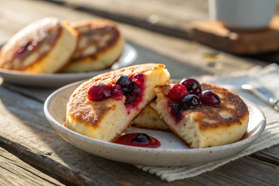 Syrniki zyskują wyjątkowy charakter dzięki starannie dobranym nadzieniom owocowym. Wiśnie wprowadzają przyjemną kwaskowatość, która przełamuje słodycz ciasta serowego. Najlepsze rezultaty osiąga się używając wiśni mrożonych lub kompotowych, ponieważ zachowują one soczystość podczas smażenia. Jagody leśne to kolejny doskonały wybór – ich intensywny aromat przenika całe ciasto, nadając syrnikowi charakterystyczny fioletowy odcień. Jabłka, szczególnie odmiany szara reneta i antonówka, po połączeniu z cynamonem tworzą klasyczne nadzienie o korzennym aromacie.