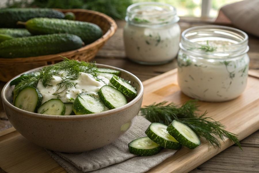 Po pokrojeniu ogórki warto lekko posolić i odstawić na 10-15 minut, aby oddały nadmiar wody. Następnie należy je delikatnie odcisnąć – dzięki temu mizeria nie będzie wodnista.