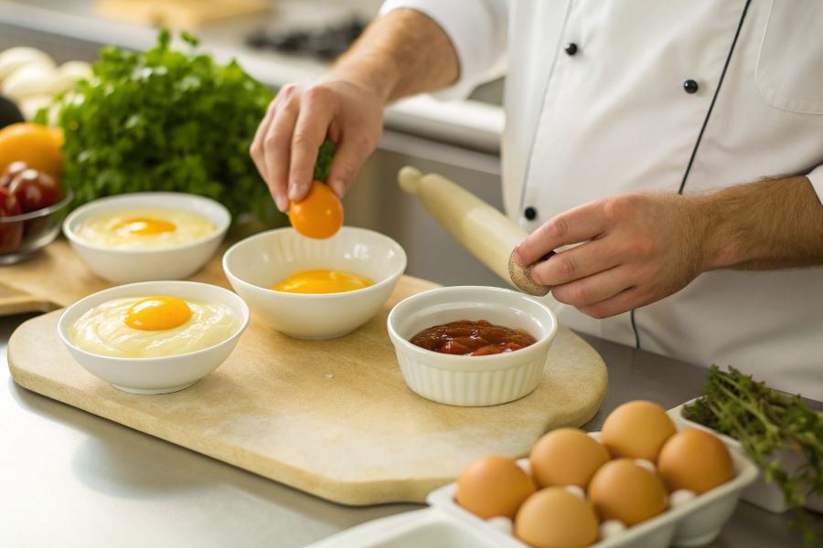 Profesjonalna wskazówka: Aby uzyskać idealną emulsję w sosach na bazie żółtek, używaj trzepaczki silikonowej zamiast metalowej – zmniejsza to ryzyko utlenienia i zapewnia lepszą kontrolę nad konsystencją.