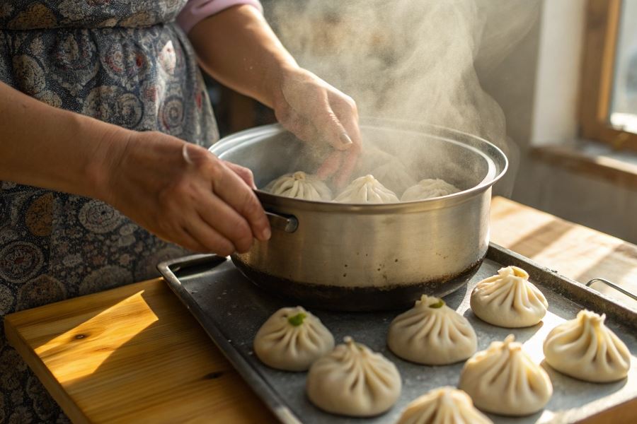 Wskazówka eksperta: Niezależnie od wybranej metody, kluczem do sukcesu jest utrzymanie stałej temperatury pary. Gotuj chinkali przez 10-12 minut, nie otwierając pokrywki, by nie uciekała para. Sprawdzaj poziom wody, by nie dopuścić do jej całkowitego wyparowania.