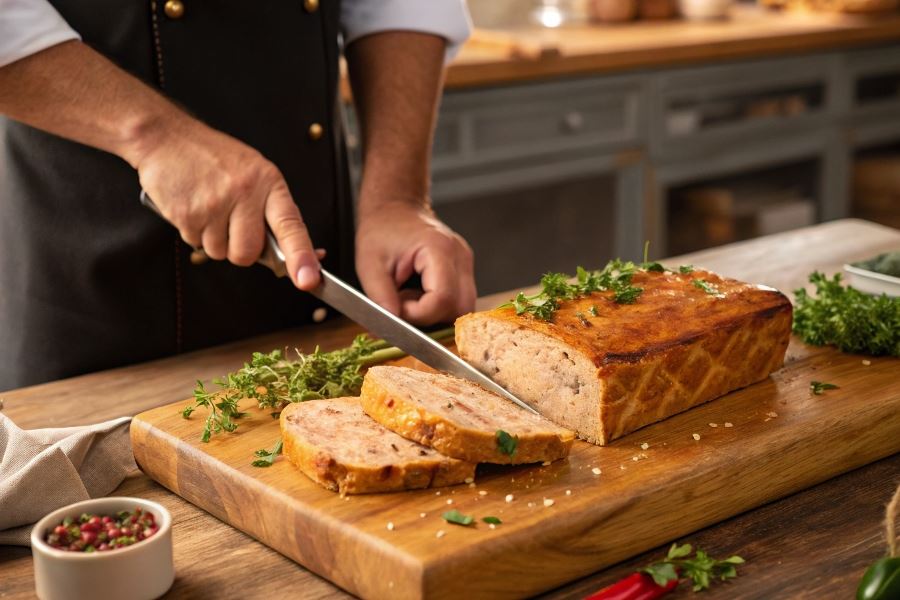 Profesjonalny trik: włóż do środka pasztetu termometr kuchenny. Idealnie upieczony pasztet osiąga temperaturę wewnętrzną 72-75°C.