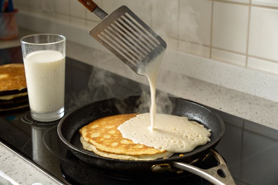 Kwaśny kefir zawiera również enzymy, które częściowo rozkładają gluten w mące, dzięki czemu naleśniki są bardziej miękkie i elastyczne nawet po ostygnięciu. To właśnie dlatego naleśniki na kwaśnym kefirze nie twardnieją tak szybko jak te przygotowane na mleku. Dodatkowo, białka zawarte w kefirze tworzą stabilną strukturę ciasta, co ułatwia smażenie i przewracanie naleśników bez ryzyka rozerwania.