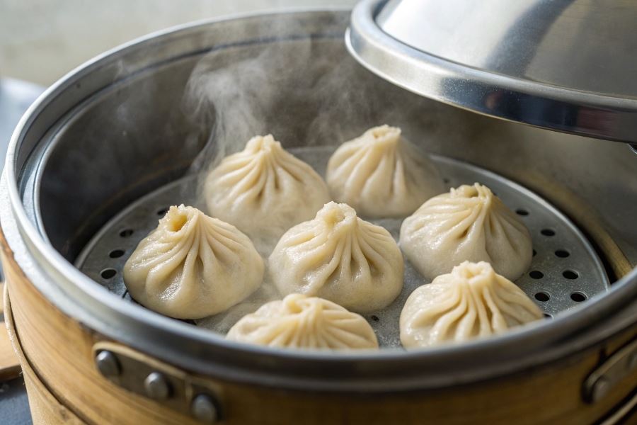 - Zachowanie soczystości – para nie wypłukuje soków z farszu, dzięki czemu chinkali pozostają soczyste i aromatyczne