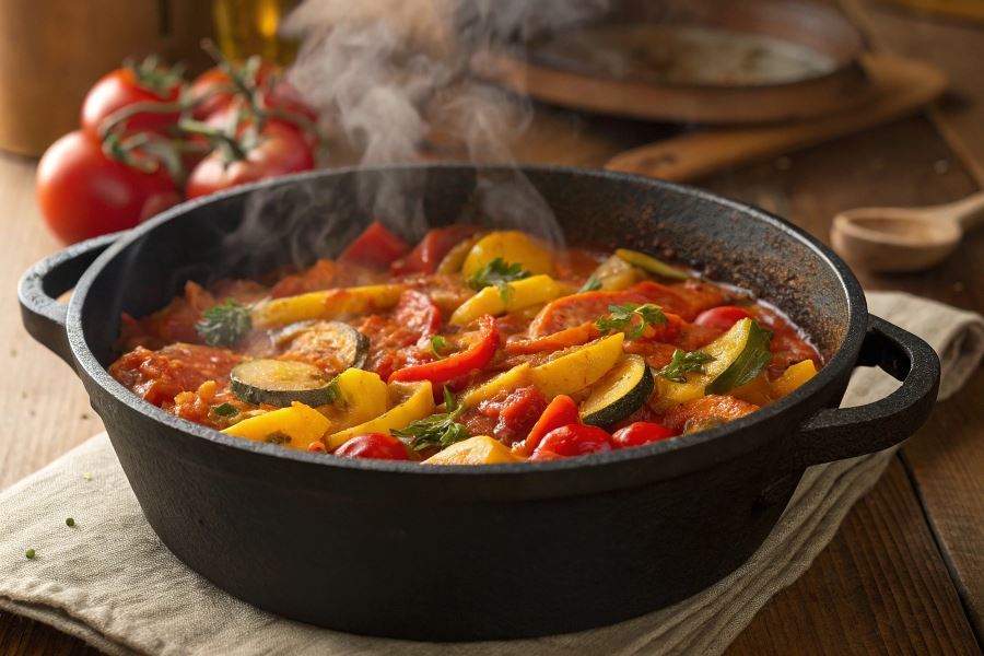 Czas gotowania należy dostosować do pożądanej konsystencji – krótszy zachowa chrupkość warzyw, dłuższy da bardziej jednolitą teksturę. Leczo powinno być soczyste, ale nie wodniste. Jeśli sos jest zbyt rzadki, możesz gotować bez przykrycia przez ostatnie 5-10 minut.