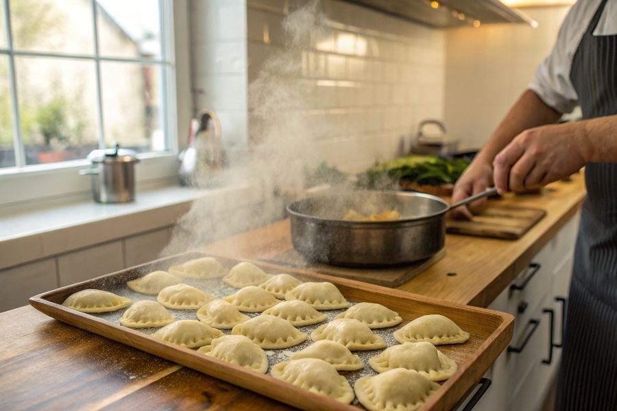 Roślinne farsze do pielmieni przeżywają prawdziwy renesans. Borowiki z truflami i tymiankiem tworzą intensywny, aromatyczny farsz, który zadowoli nawet najbardziej wymagających smakoszy. Twaróg z dodatkiem pieczonego czosnku, świeżych ziół i prażonych orzechów włoskich stanowi kremową alternatywę o wyrazistym charakterze.