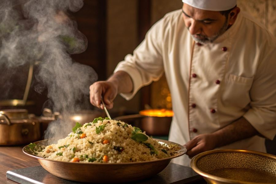Technika przygotowania pilawu wymaga precyzji – ryż najpierw podsmażany jest na klarowanym maśle lub oleju, co zapobiega sklejaniu się ziaren. Następnie dodawany jest bulion w proporcji zwykle 1:2 (ryż do płynu), a całość gotuje się na małym ogniu, często pod przykryciem, bez mieszania.