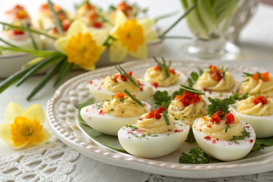 Wegańskie alternatywy jajek faszerowanych zyskują na popularności. Tofu z dodatkiem czarnej soli (kala namak) doskonale imituje jajeczny smak, a odpowiednio przyprawione stanowi bazę dla wegańskiego farszu. Mieszanka suszonych pomidorów z bazylią i orzeszkami piniowymi tworzy śródziemnomorską wariację, która zachwyca intensywnością smaku.