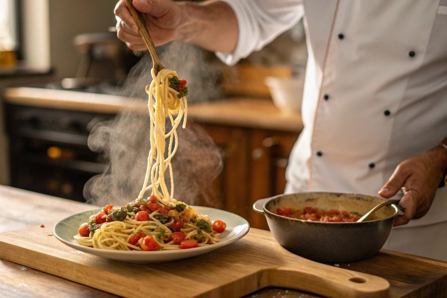 Do przygotowania potrzebujesz dojrzałych pomidorów (lub wysokiej jakości pomidorów z puszki), tuńczyka, kaparów, czosnku, oliwy z pierwszego tłoczenia oraz świeżej bazylii. Sos gotuje się na wolnym ogniu przez około 20-25 minut, co pozwala na idealne połączenie smaków. Doskonale komponuje się z makaronem typu spaghetti lub linguine.