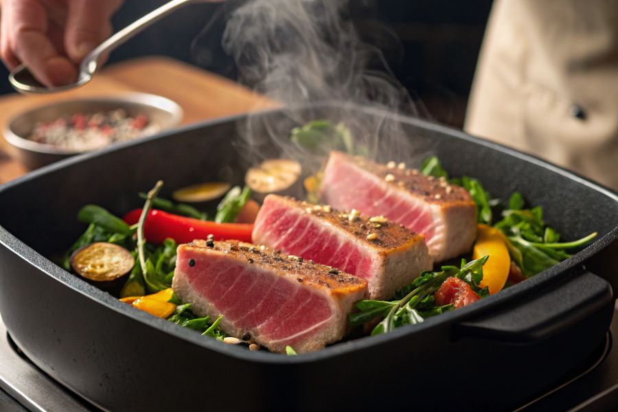 - Usmażyć stek z tuńczyka z idealnie różowym środkiem