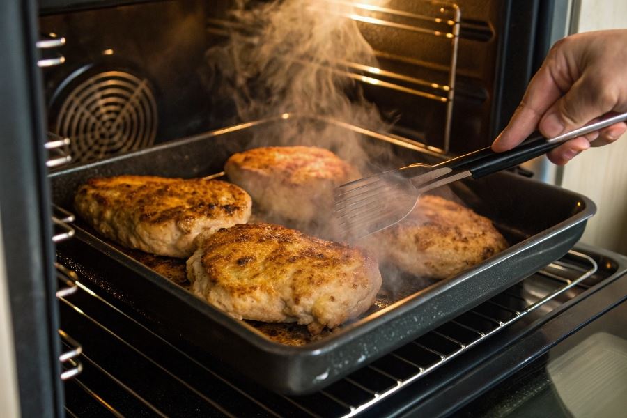 Wskazówka eksperta: Jeśli zauważysz choćby delikatne różowe zabarwienie w środku kotleta, przedłuż pieczenie o 3-5 minut i ponownie sprawdź temperaturę.